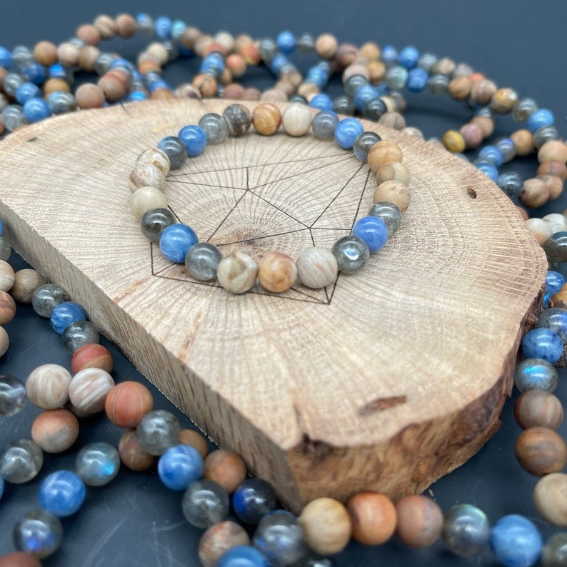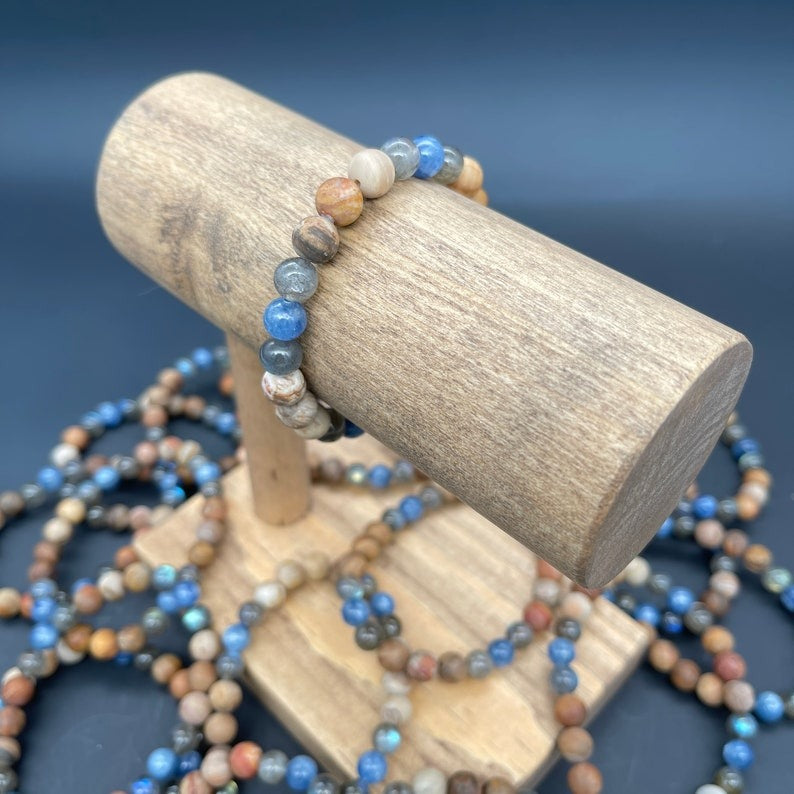 "Chop Wood / Carry Water” Bracelet – Kyanite, Labradorite, & Petrified Wood (8mm)